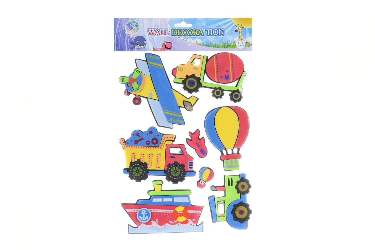 Questo set di adesivi murali in gommapiuma con motivi di aereo, camion, mongolfiera, nave, trattore e altri veicoli illumina qualsiasi cameretta. Grazie ai colori vivaci e all’effetto 3D della gommapiuma, gli adesivi creano uno spazio giocoso che favorisce fantasia e apprendimento sui mezzi di trasporto.