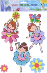 Questo incantevole set di decorazioni murali porta in casa delicatezza e colore. Tre eleganti fate, fiori variopinti e una farfalla giocosa creano una combinazione armoniosa, perfetta sopra il lettino, la scrivania o nell’angolo giochi. Gli elementi sono in schiuma leggera con una superficie piacevole al tatto e, grazie al retro autoadesivo, possono essere applicati anche da decoratori alle prime armi.