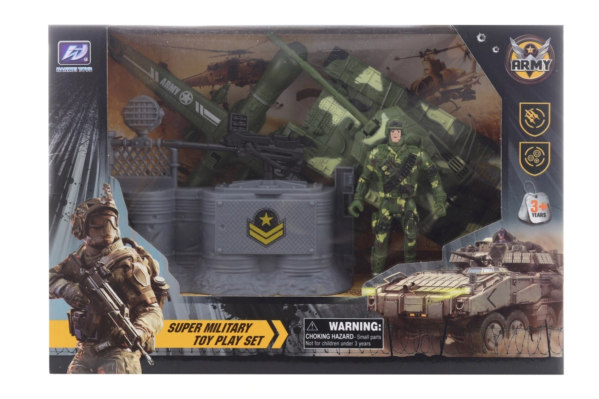 Scopri il divertente set militare con drone, perfetto per i piccoli amanti dell’azione. Il set include un drone, una figura di soldato e un carro armato in plastica resistente, ideale per giochi creativi. Confezionato in una scatola regalo. Adatto ai bambini dai 3 anni.