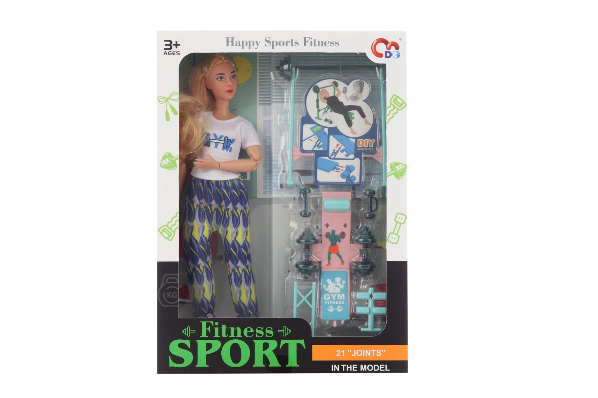 Scopri divertimento e movimento con questa bambola snodabile e il ricco set di accessori fitness. La bambola ha testa, braccia e gambe flessibili, quindi può assumere molte pose realistiche durante l’allenamento. Inclusi una panca per esercizi e 5 manubri di diverse dimensioni. Gioco creativo ideale per bambini dai 3 anni in su.