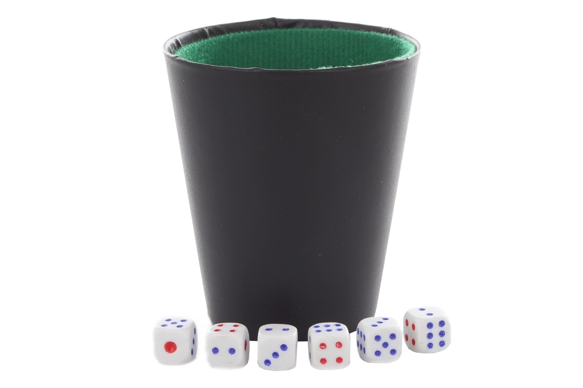 Set tradizionale per gli amanti dei giochi da tavolo: sei dadi da gioco di qualità e un bicchierino robusto con interno in feltro per un lancio più silenzioso e preciso. Ideale per il gioco in casa e in viaggio. Lancio silenzioso, dimensioni compatte e presa confortevole rendono questo set una scelta eccellente per ogni partita.