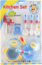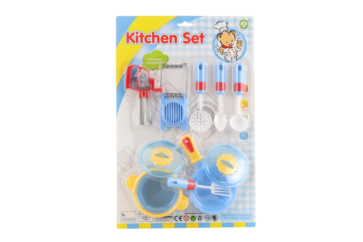 Il set da gioco per la cucina pensato per i piccoli cuochi include tutto il necessario per fingere di cucinare. Troverai una pentola con coperchio, una padella con coperchio, una paletta, mestoli, un affetta-uova e una frusta manuale. Confezionato su blister, ideale come regalo. Adatto dai 3 anni.