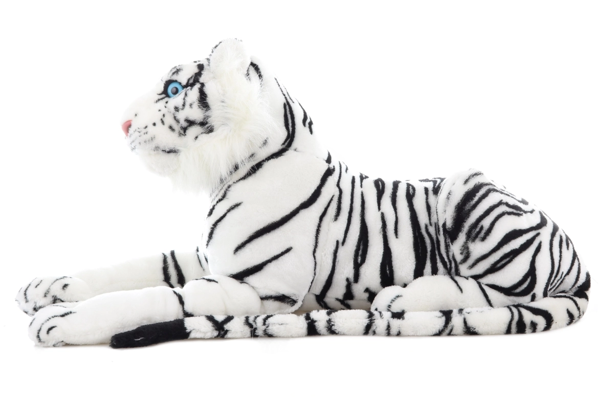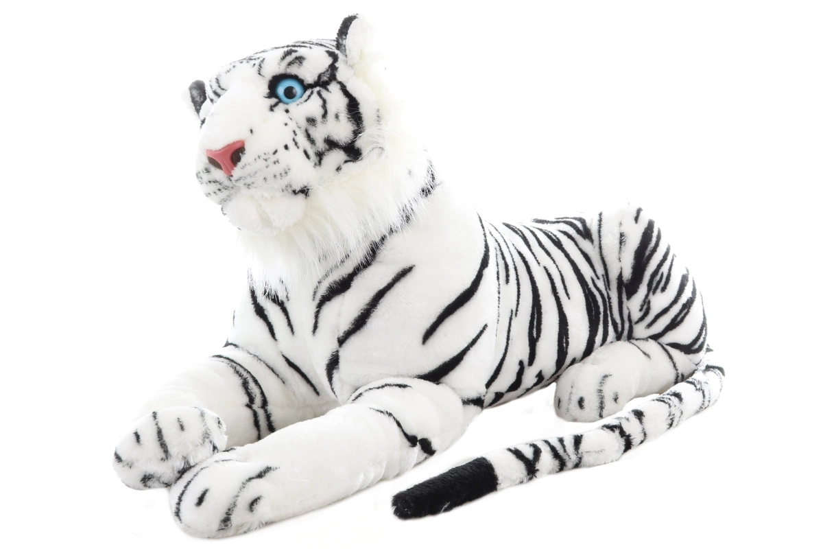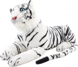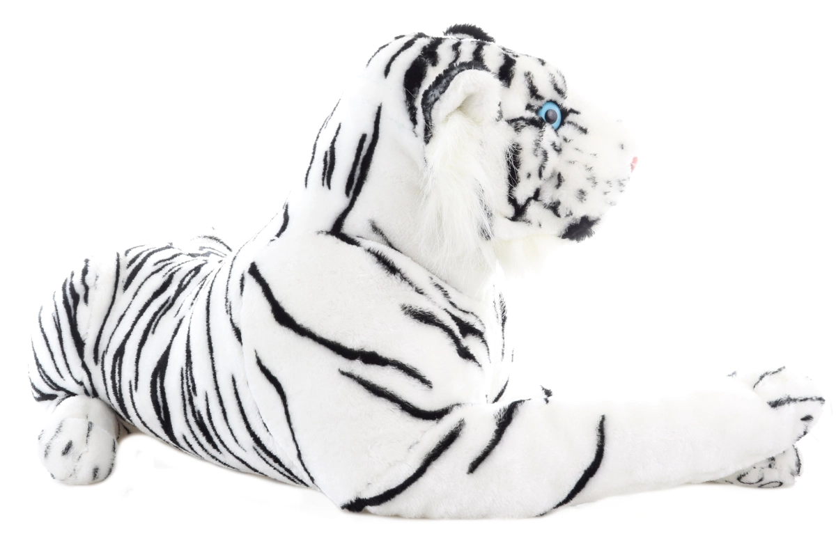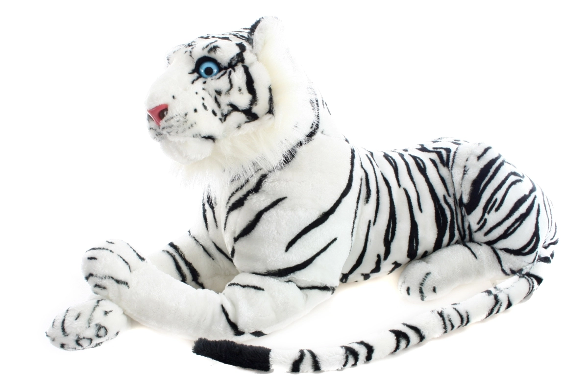 Adorabile e realistico tigre bianco di peluche lungo 70 cm, ideale per piccoli e grandi amanti degli animali. Materiale extra morbido, occhi azzurri espressivi e strisce dettagliate lo rendono il compagno perfetto per coccole, decorazione e gioco creativo. Adatto fin da 0+.