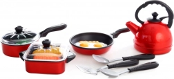 Il set da gioco per piccoli chef contiene tutto il necessario per cucinare divertendosi: teiera, padella, casseruola, pentola, spatole e cibi finti. Grazie alla plastica di qualità il set è leggero, sicuro e ideale per il gioco quotidiano. 13 pezzi, plastica resistente e età 3+ garantiscono tanto divertimento e lo sviluppo della fantasia e della motricità fine.