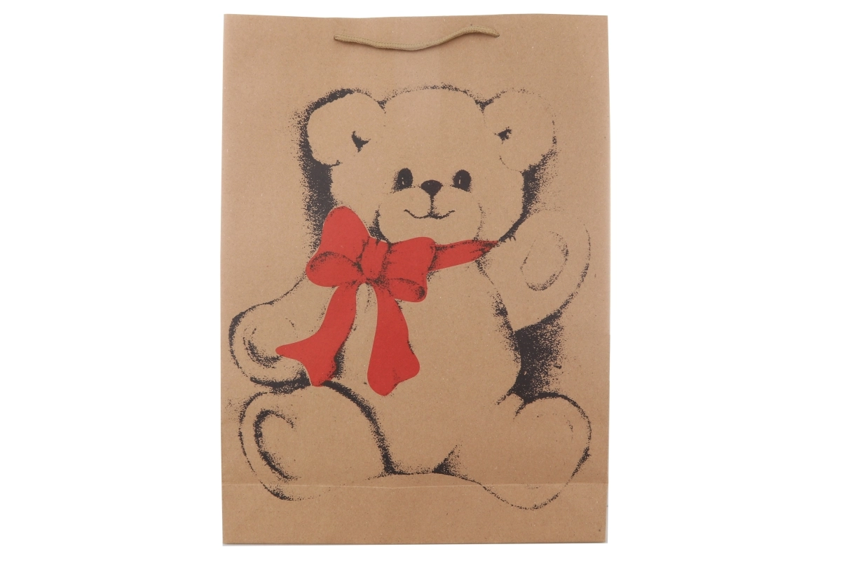Elegante busta regalo con motivo orso in formato grande, ideale per un dono presentato con stile. Grazie alla struttura più robusta e alle dimensioni pratiche 31 × 42 × 9,5 cm, è adatta a libri, giocattoli e confezioni più voluminose. Un’ottima soluzione decorativa per ogni occasione.