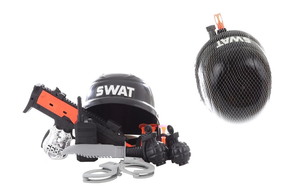 Set completo della polizia per piccoli eroi: include casco, pistola, proiettili, manette, coltello, ricetrasmittente, distintivo e granate. Ideale per il gioco creativo e lo sviluppo dell'immaginazione. Materiale plastico leggero, ricchi accessori e design sicuro per bambini dai 3 anni.