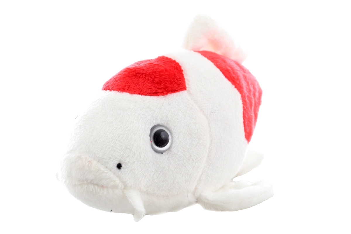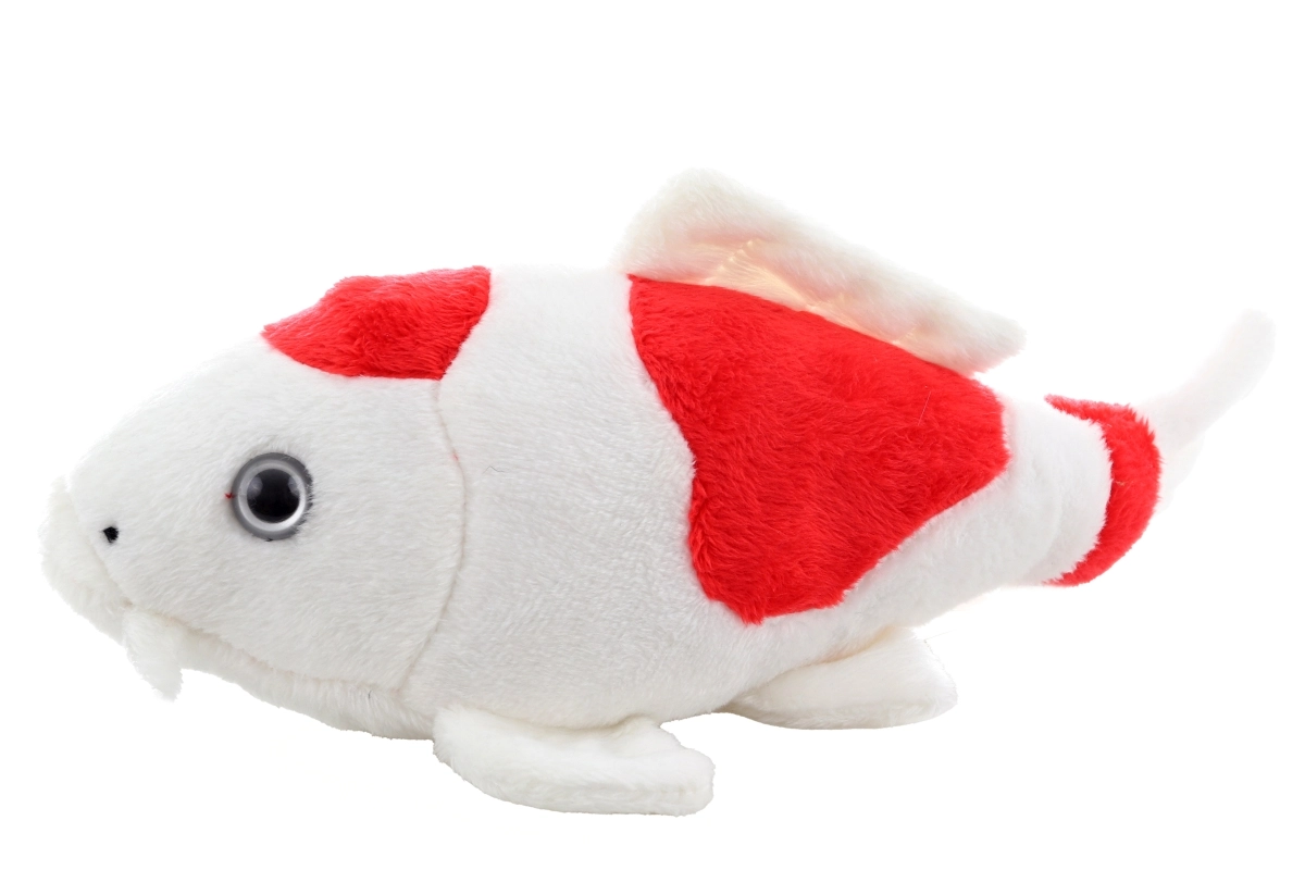 Questa soffice carpa koi di peluche in bianco e rosso farà felici tutti i bambini e gli amanti degli animali. È piacevolmente morbida, leggera e si adatta perfettamente alla mano, quindi è perfetta per coccole, gioco e per calmarsi prima di dormire.