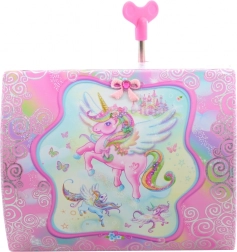 Questa incantevole portagioie per bambini di colore rosa unisce la praticità nel riporre piccoli oggetti a un'esperienza magica. Dopo aver caricato la chiavetta, davanti allo specchietto la ballerina inizia a danzare e si diffonde una piacevole melodia. Il motivo con unicorni e i dettagli scintillanti la rendono un accessorio perfetto per la cameretta.