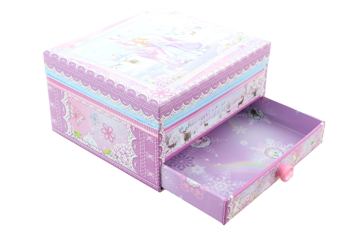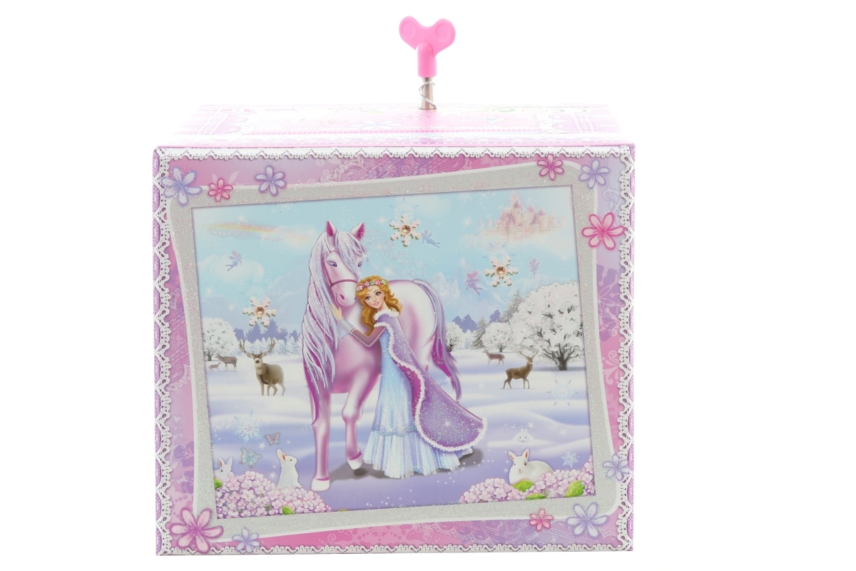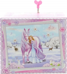 Questa elegante scatola portagioielli musicale con principessa invernale e unicorno unisce aspetto decorativo e organizzazione pratica. Dopo aver caricato il meccanismo e aperto il coperchio, la figurina inizia a ruotare e parte una melodia che crea un’atmosfera magica.