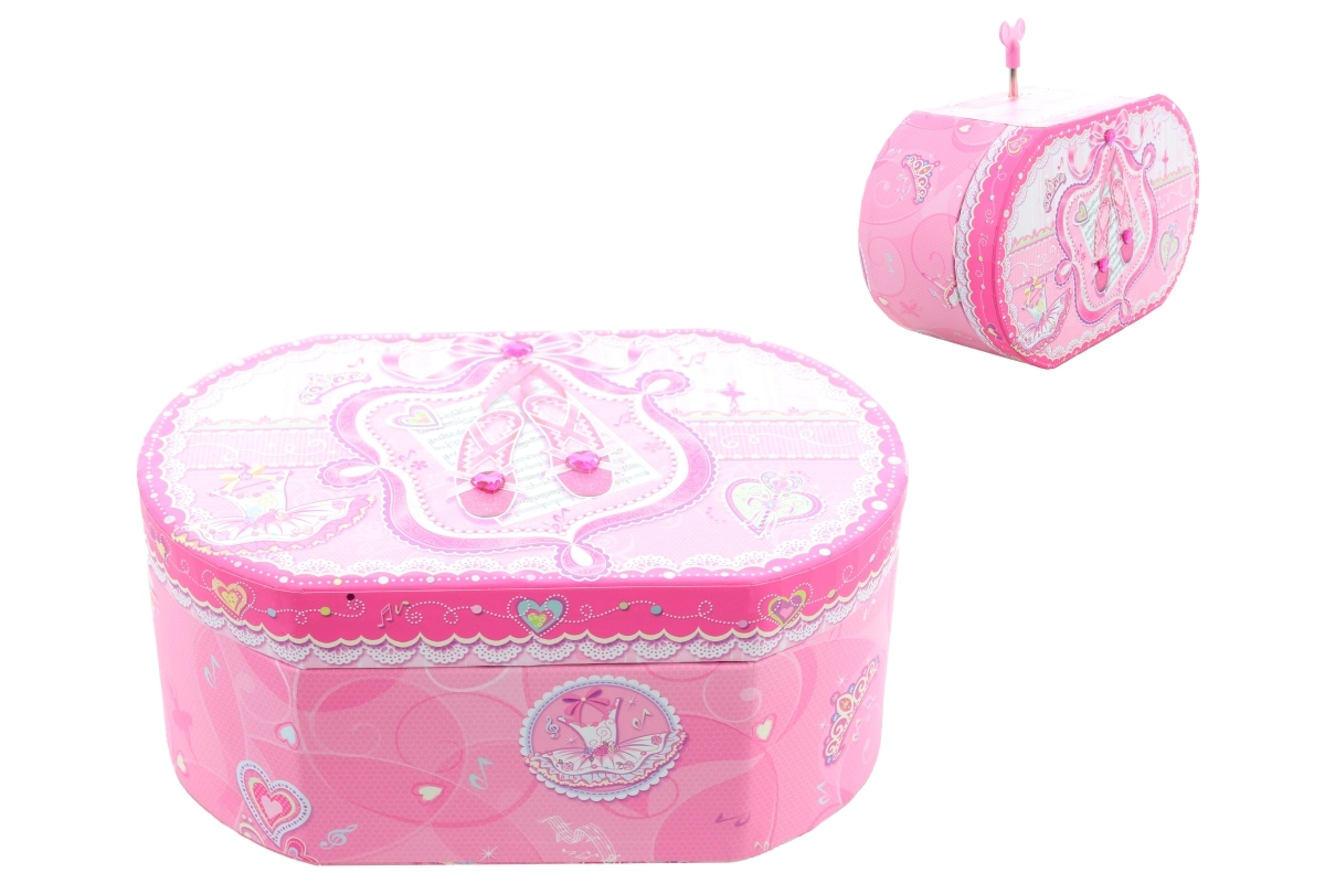 Questa affascinante scatola portagioie musicale in delicato rosa unisce la praticità di riporre i piccoli oggetti al fascino del tradizionale carillon. Dopo aver caricato la chiavetta, all'interno la ballerina prende a danzare e la melodia crea un'atmosfera piacevole.