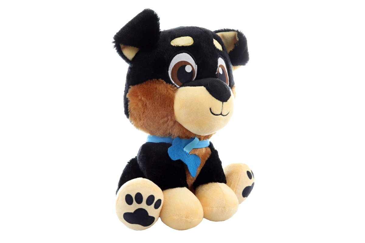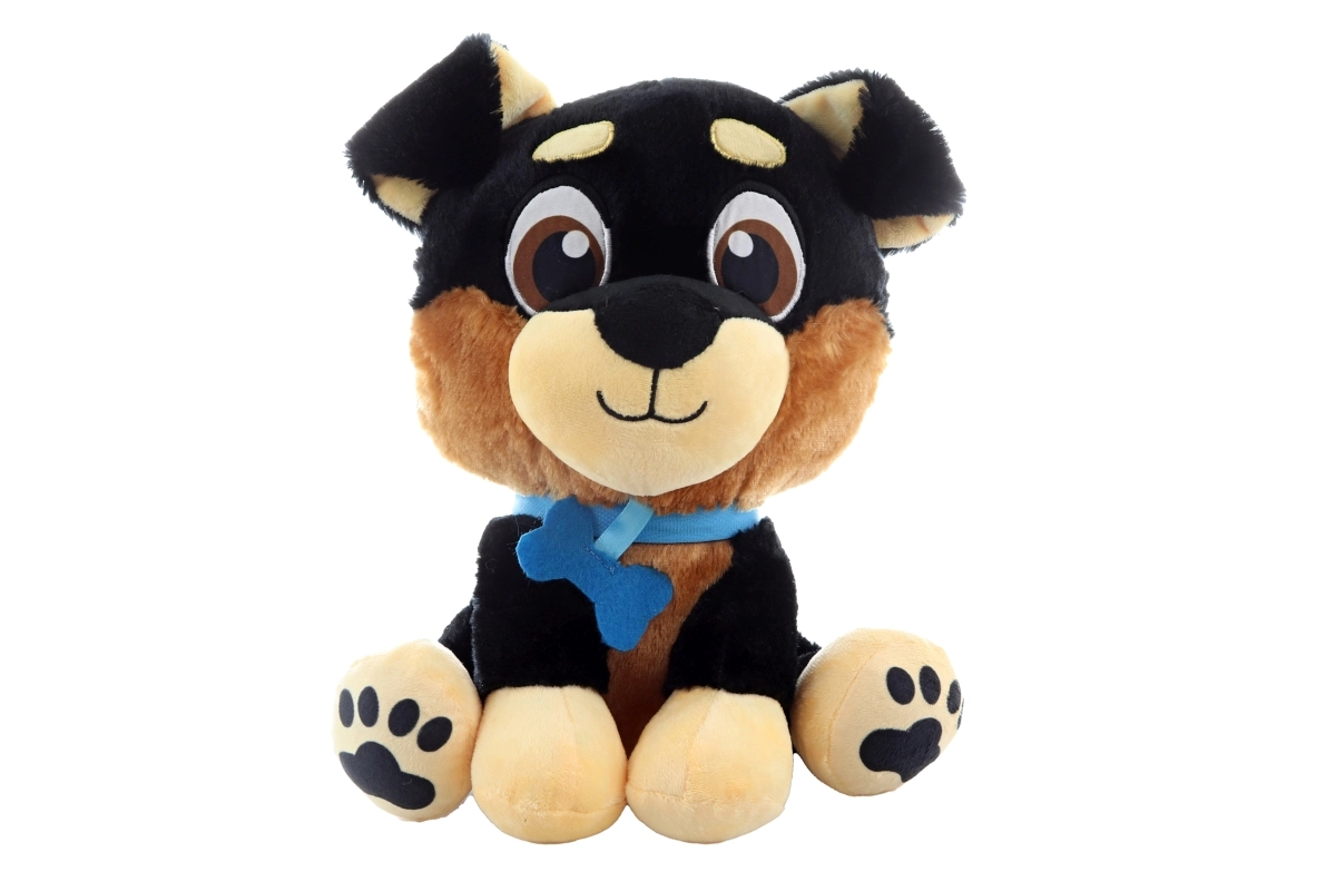 La struttura sicura senza piccole parti, le cuciture resistenti e il materiale soffice lo rendono un compagno perfetto per neonati e bambini più grandi. Il collarino blu alla moda e le zampette con stampa donano al giocattolo un aspetto unico.