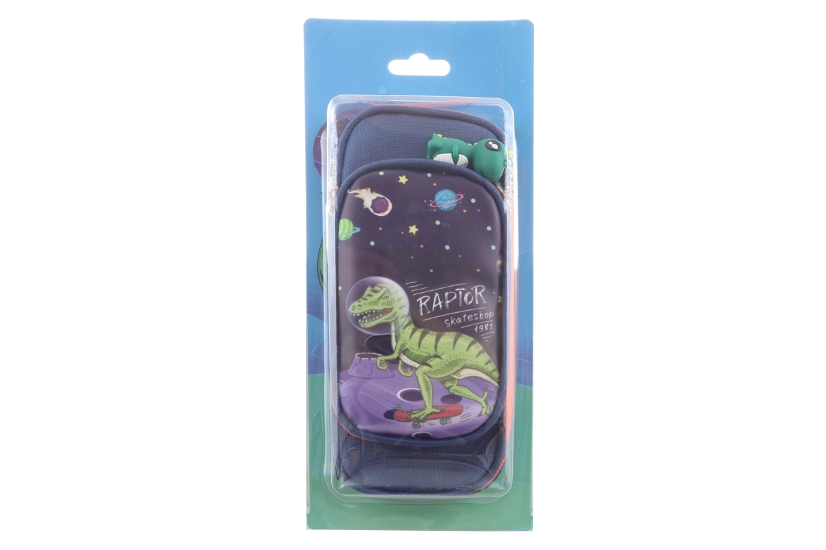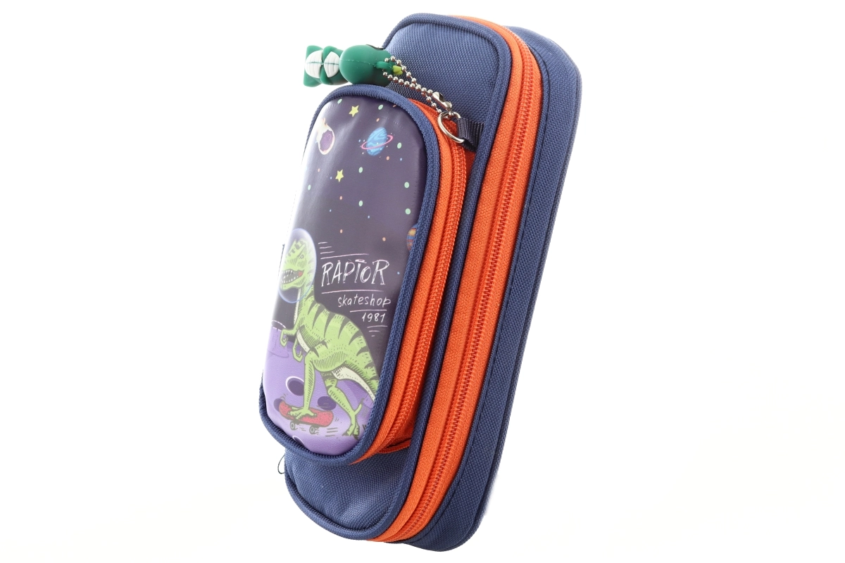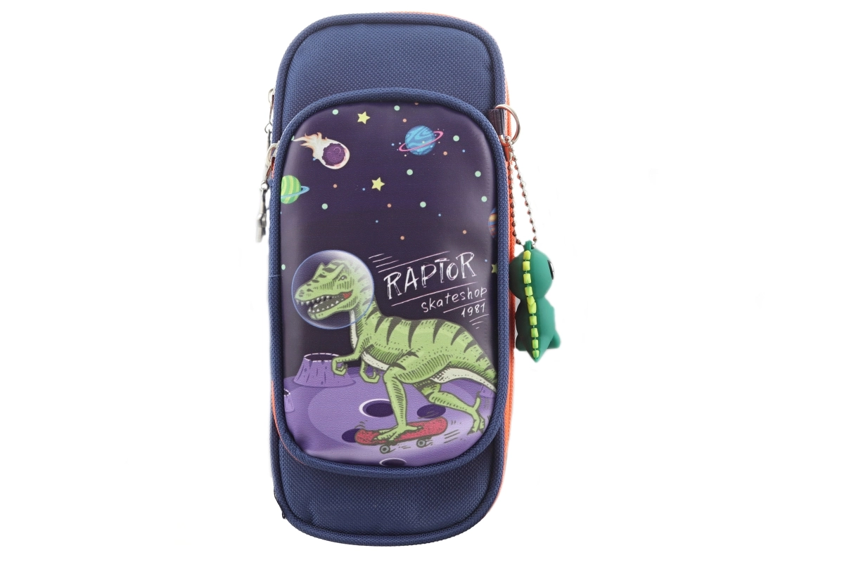 Astuccio pratico e resistente con motivo dinosauro, ideale per tutti gli amanti delle creature preistoriche. Lo scomparto principale contiene matite, penne, pastelli e gomma; la tasca più piccola è perfetta per oggetti minuti come temperamatite o chiavi. Nella confezione è incluso un elegante ciondolo dinosauro per riconoscere facilmente l’astuccio.