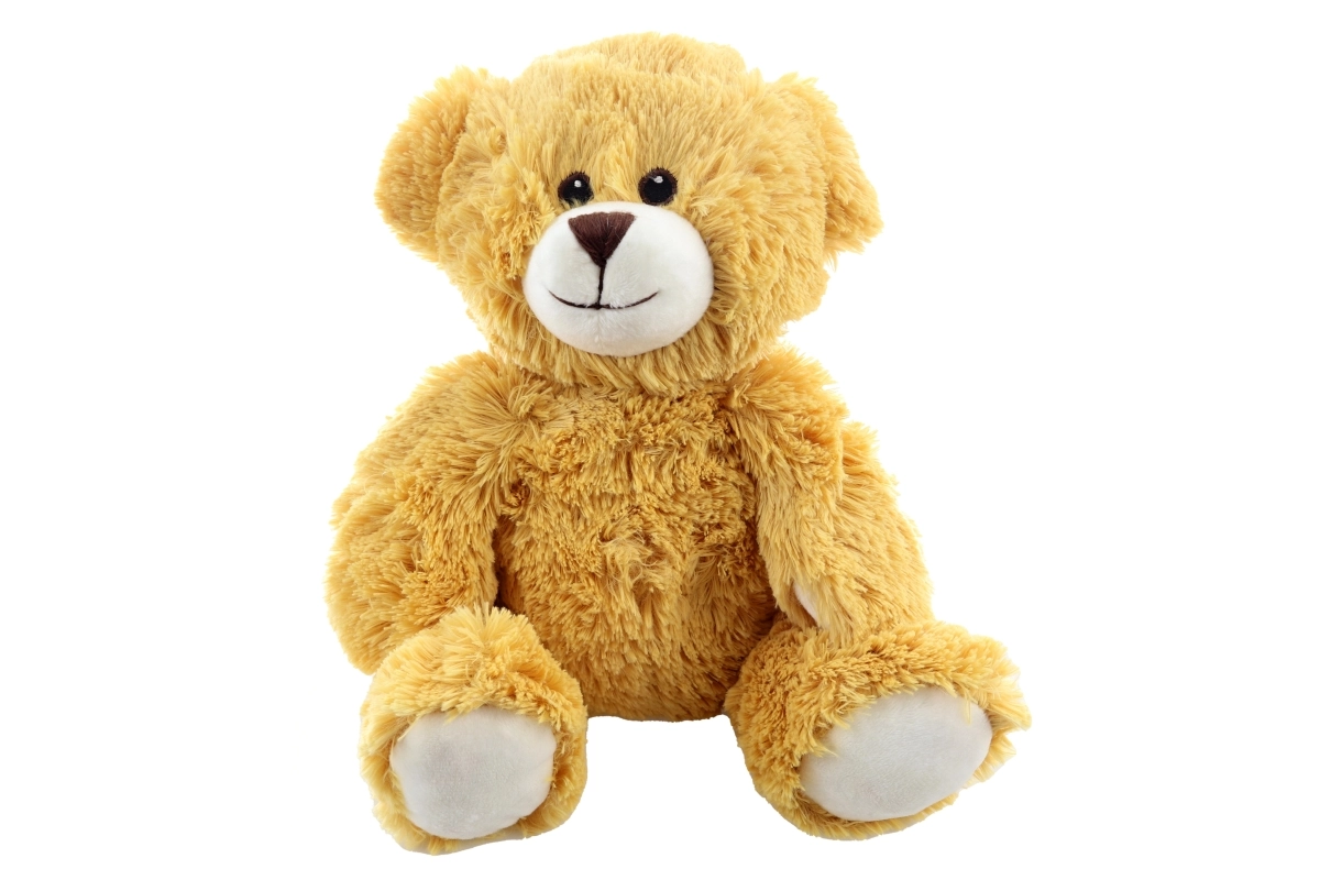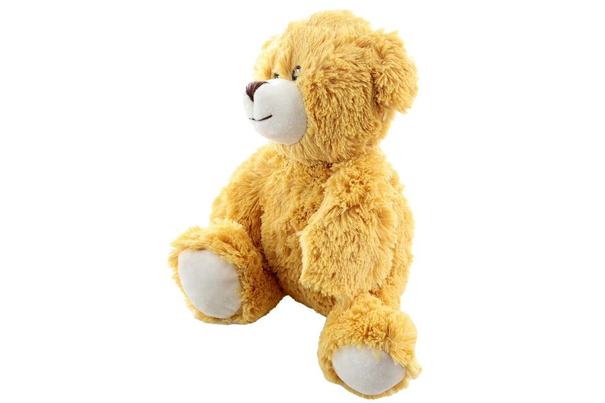 Questo classico orsetto di peluche in tonalità beige‑dorata ha il pelo morbidissimo, musetto e zampine bianchi e un delicato sorriso ricamato. È progettato per offrire il massimo comfort e sicurezza durante le coccole e la nanna.
