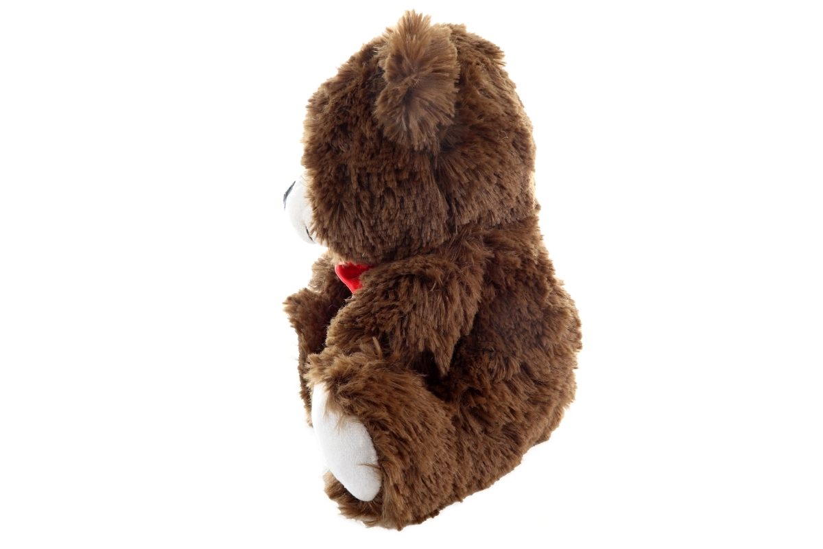 Questo orsetto di peluche marrone scuro conquisterà il cuore di bambini e adulti. Ha un pelo morbido, zampette e musetto bianchi a contrasto, occhietti espressivi e un tenero fiocco rosso. Grazie all’ottima fattura e all’imbottitura soffice è perfetto da abbracciare, per addormentarsi o come decorazione nella cameretta.