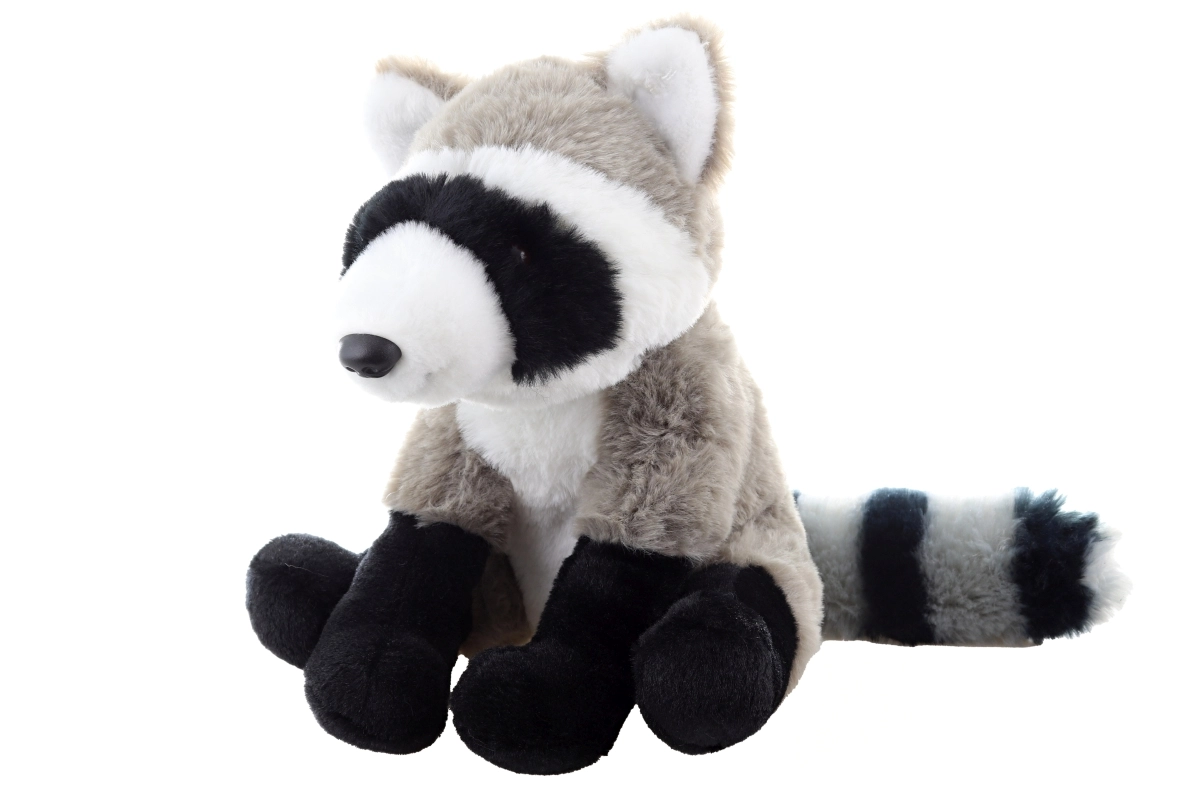 Questo procione di peluche è realizzato in peluche estremamente soffice che invita a essere coccolato. La colorazione naturale con la tipica mascherina e la coda a strisce lo rende un giocattolo accattivante e una graziosa decorazione. Le dimensioni 22 × 16 × 18 cm (senza coda circa 14 cm) garantiscono una misura ideale per le piccole mani dei bambini.