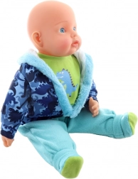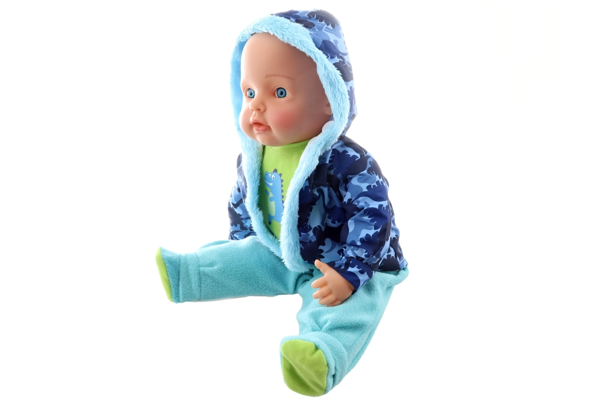 Questa grande bambola neonato maschietto è un ottimo compagno per il gioco quotidiano. Grazie al corpicino morbido è piacevole da tenere e abbracciare, mentre la testa e le estremità degli arti in plastica favoriscono un aspetto autentico. Il set di abbigliamento stiloso con motivo dinosauro si può svestire e rivestire con facilità – ideale per allenare la motricità fine e i giochi di fantasia.