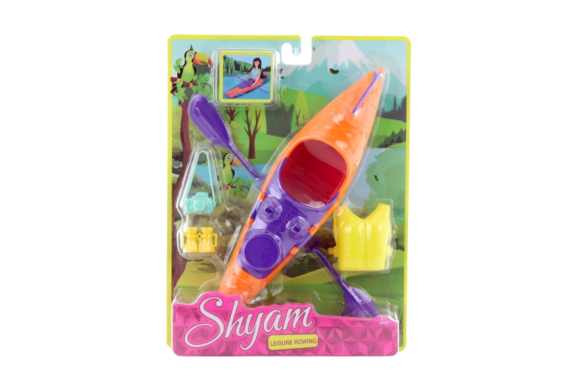 Goditi avventure acquatiche con questo adorabile set: un kayak per bambola con fantastici accessori. Inclusi giubbotto di salvataggio, pagaie, binocolo e fotocamera, tutti in plastica resistente per un gioco sicuro e facile. Ideale per bambini dai 3 anni.
