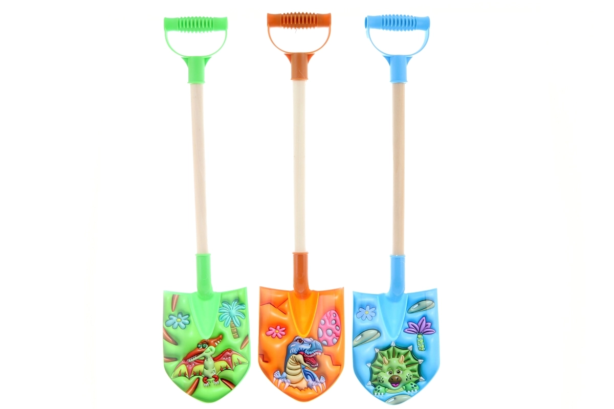 La pala per sabbia per bambini con motivo DINO combina un robusto manico in legno e una paletta in plastica resistente. Ideale per il parco giochi e il giardino, lunghezza 52 cm, adatta ai bambini da 3 anni in su.