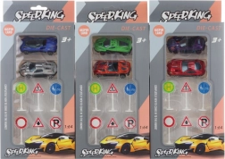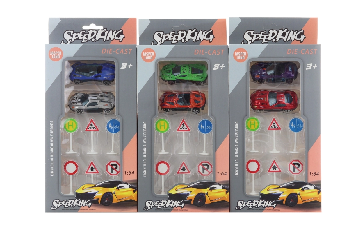 Divertente set di macchinine in metallo con realistici segnali stradali in plastica per piccoli guidatori. Ottimo per sviluppare la fantasia e imparare le regole del traffico, ideale come regalo per bambini dai 3 anni.