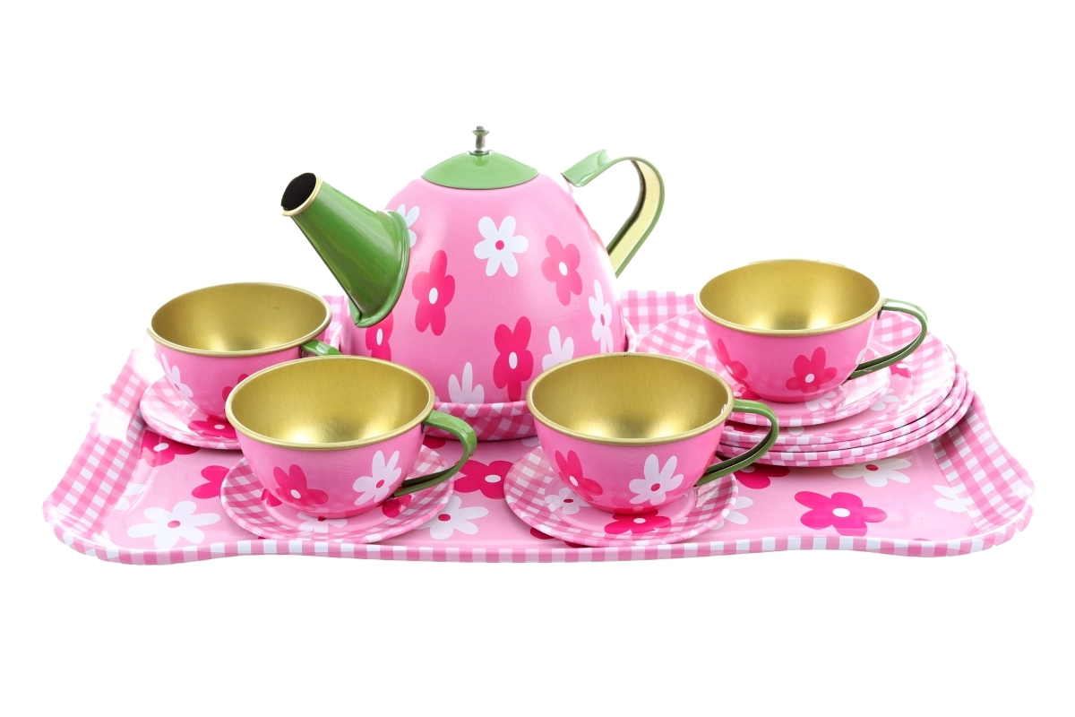 Il set include tutto il necessario per servire 4 persone: teiera (circa 11 cm), tazzine con piattini, piattini da dessert e vassoio. Ideale per il gioco in casa, le visite degli amici o come regalo. Il pack compatto facilita riporre e trasportare.