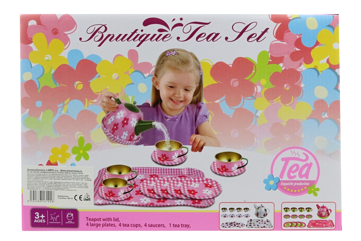 Un elegante set da tè in latta con delicato motivo floreale farà felice ogni piccola padrona di casa. Contiene tutto il necessario per un perfetto tè delle cinque – dalla teiera ai piattini e al vassoio. Il set è leggero, resistente e sicuro per bambini dai 3 anni. Set completo, design floreale e robusta struttura in latta garantiscono ore di divertimento e stimolano la fantasia dei bambini.