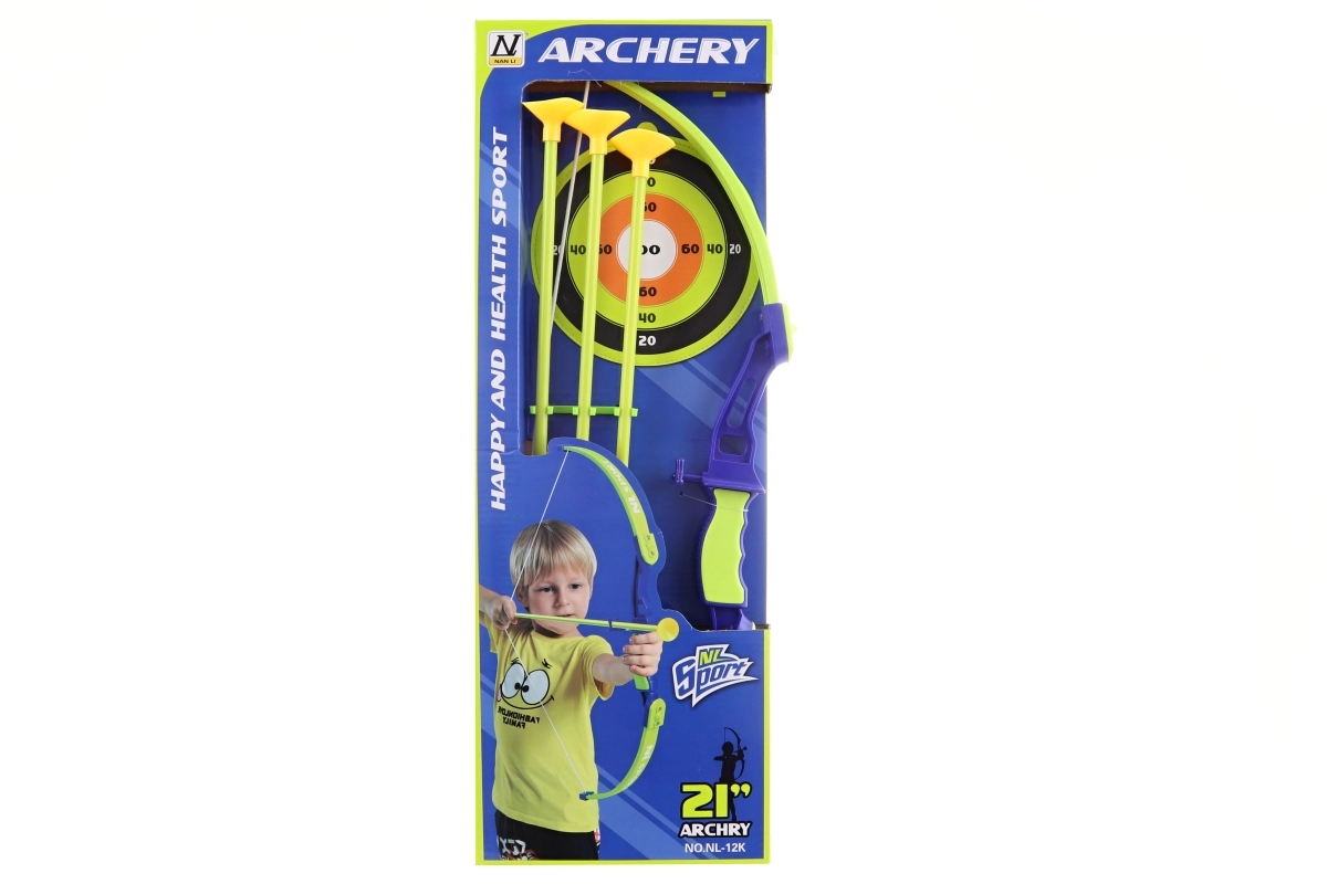 Arco in plastica, 3 frecce con ventosa, bersaglio