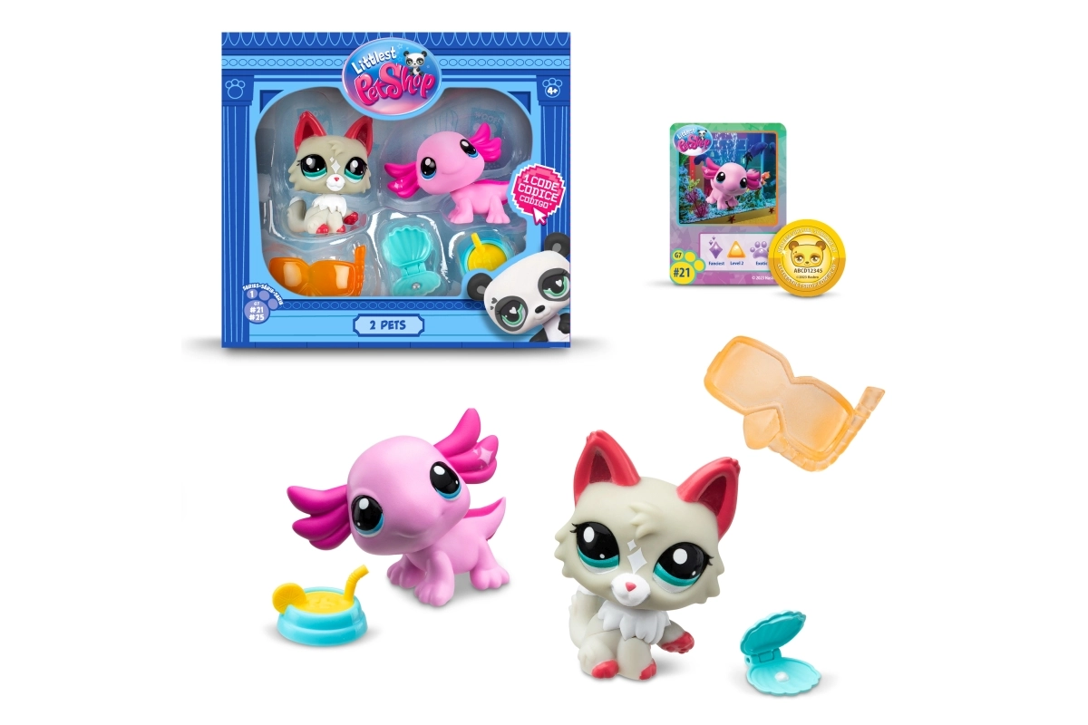 La Serie 1 porta oltre 65 nuovi amici – dal panda e gatto all’assolotto e al formichiere. Ogni confezione contiene due figure dettagliate con i tipici occhioni grandi e testa mobile/bobble, piccoli accessori tematici e un codice per sbloccare contenuti esclusivi nel mondo digitale di Littlest Pet Shop.