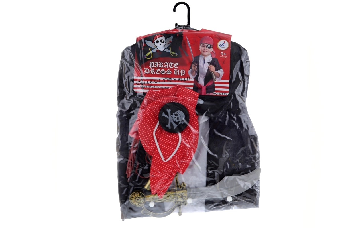 Salpate all’avventura con questo completo da pirata per bambini! La confezione include mantello e pantaloncini, una sciabola, una bandiera da pirata, un foulard per la testa, una cintura e una fascia per l’occhio. Scelta ideale per feste in maschera, carnevale e giochi di fantasia a casa. Il materiale leggero e la vita elastica garantiscono un comfort di utilizzo per bambini dai 3 anni in su.