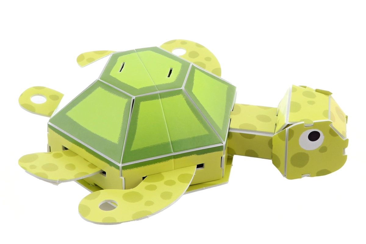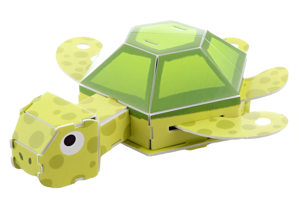 Una volta assemblato, nasce una graziosa tartarughina che abbellirà la cameretta e farà felice ogni piccolo costruttore.