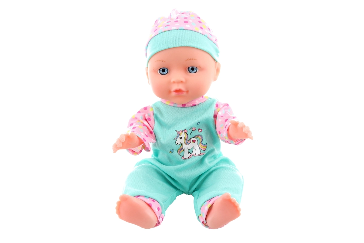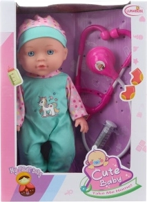 Dolcissimo bebè di 27 cm con completino a tema unicorno che farà felice ogni piccolo caregiver. Il set include stetoscopio e siringa per giocare al dottore. La bambola ha braccia, gambe e testolina mobili e un corpo rigido in plastica. Ideale per sviluppare la fantasia e il role-play dei bambini dai 3 anni.