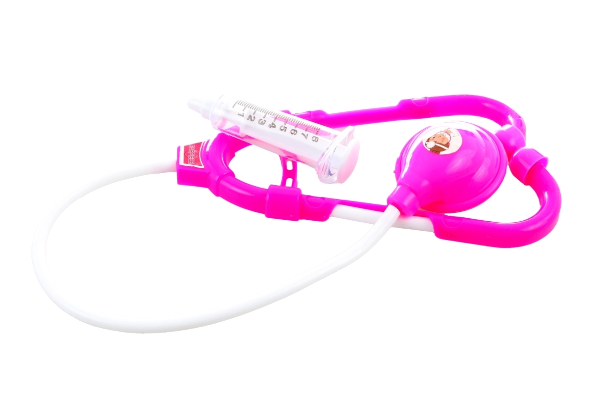• Gioco del dottore realistico: accessori in plastica sicuri – stetoscopio e siringa
