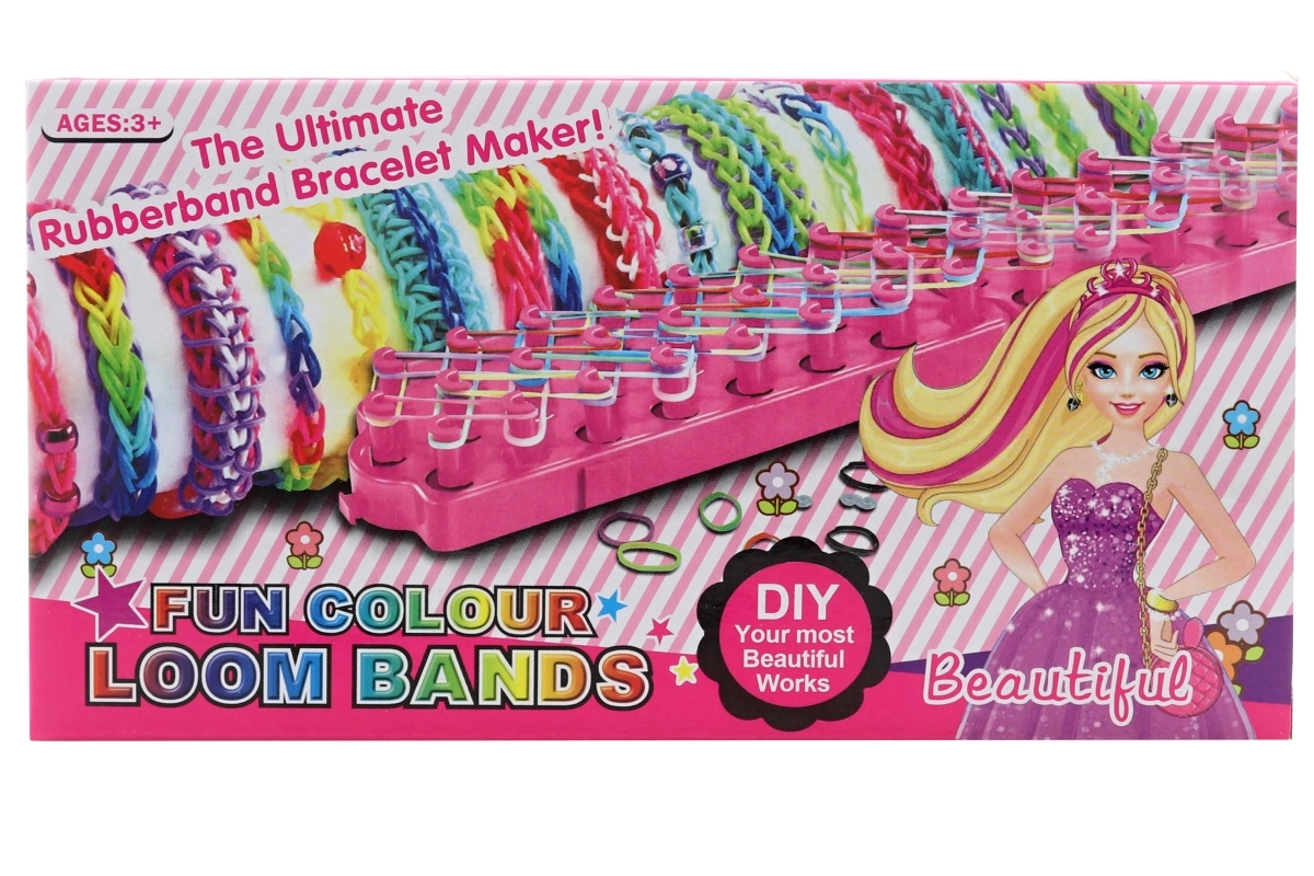 Set creativo per piccoli e grandi creatori: con questo kit per la creazione di braccialetti con elastici realizzerai facilmente accessori originali. La confezione include un telaio e elastici colorati, tutto ordinatamente riposto in una scatola. Ideale per lo sviluppo della motricità fine, della creatività e per divertire i bambini dai 3 anni in su.