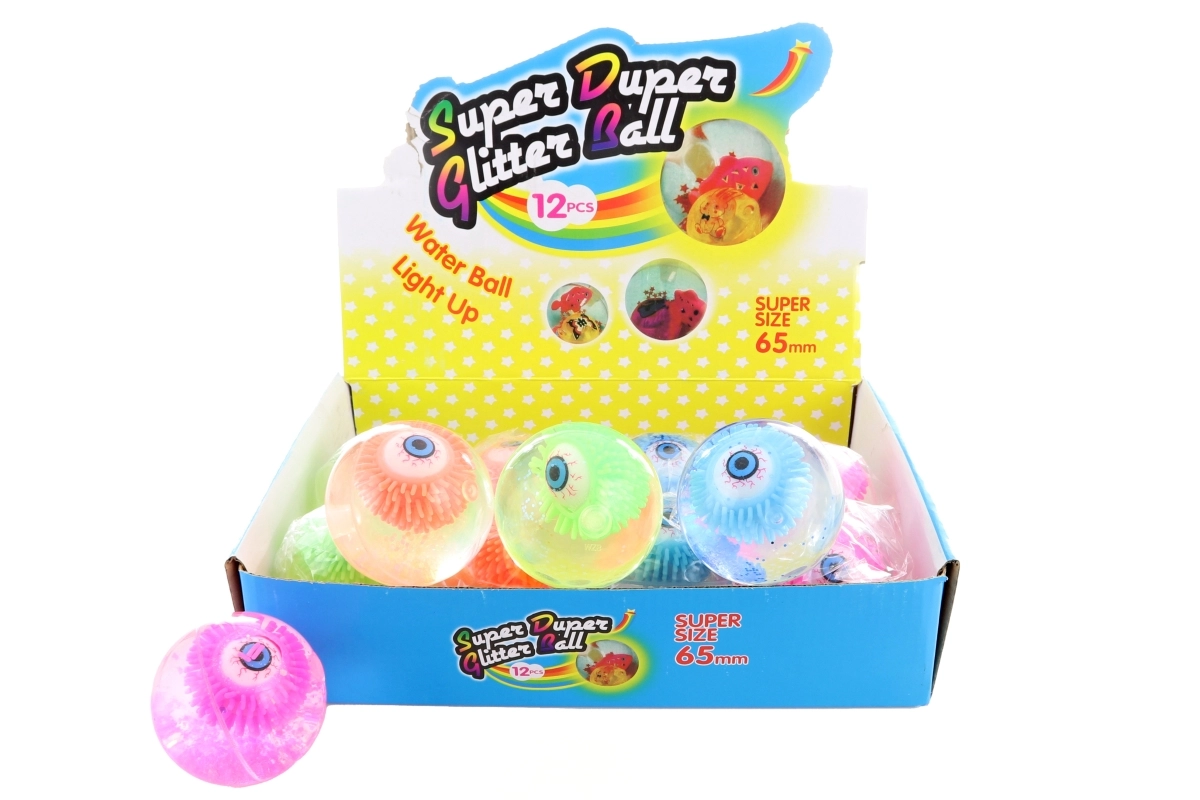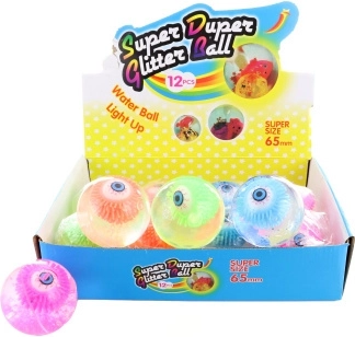 Divertente pallina luminosa con motivo a occhio che, dopo l'impatto, inizia a lampeggiare. Grazie al diametro di 6 cm si adatta perfettamente alla mano, è realizzata in plastica resistente ed è adatta ai bambini dai 3 anni.