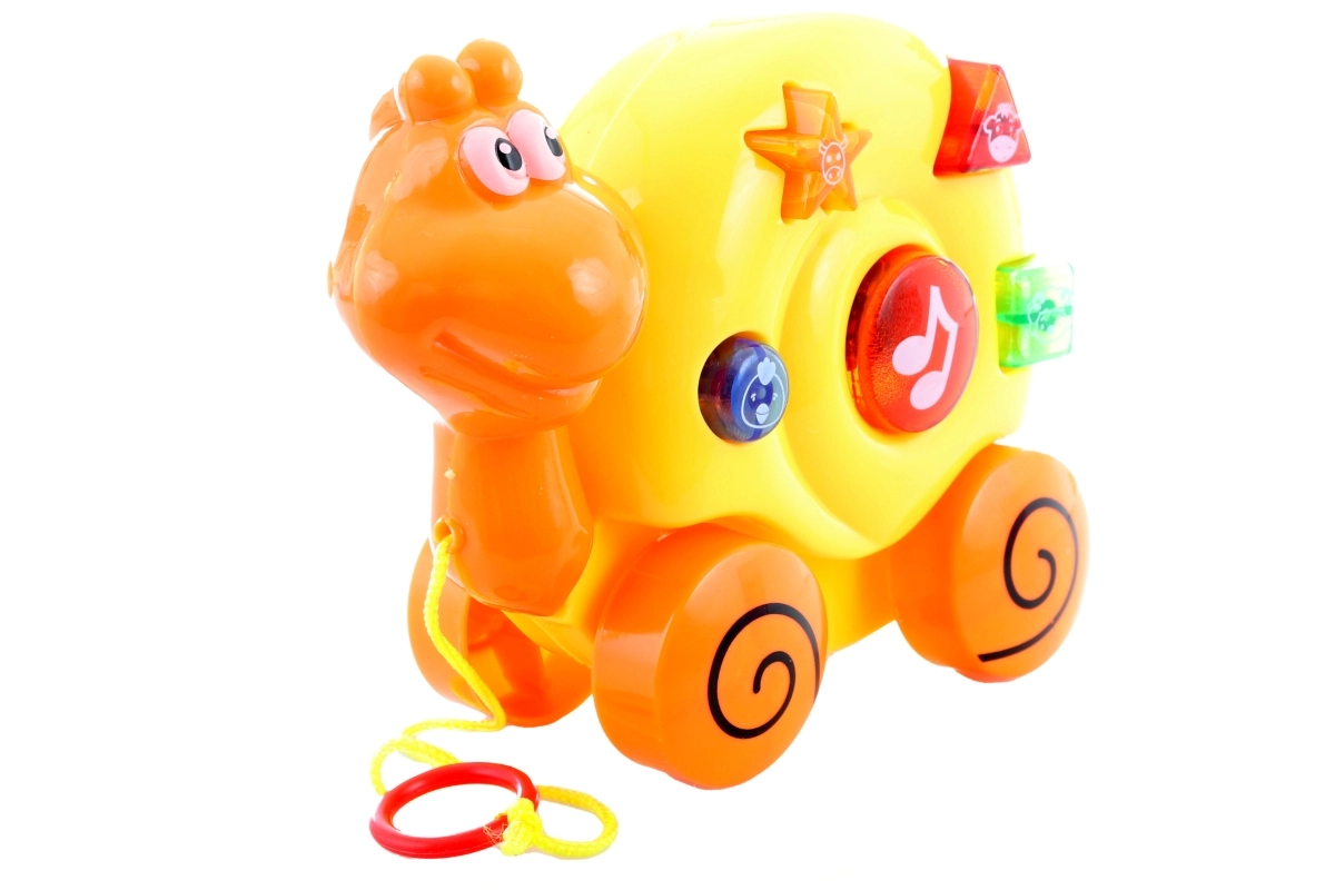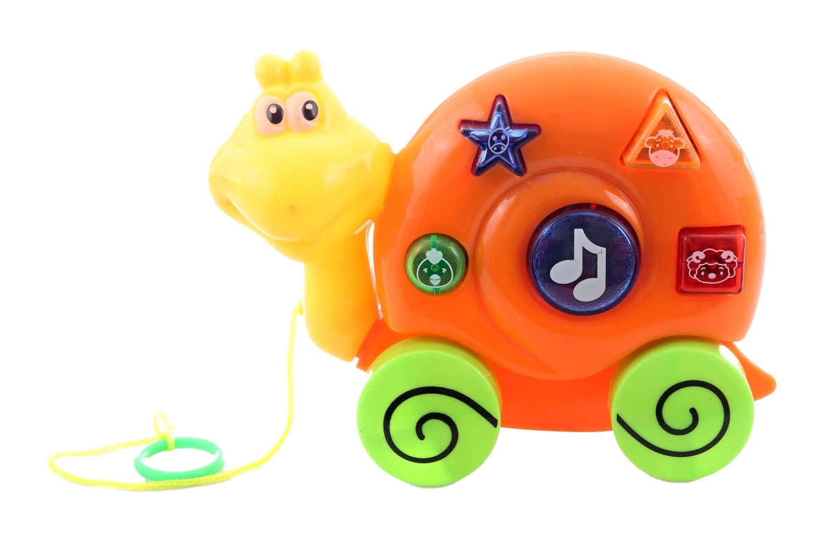 Questa colorata chiocciola a traino è il giocattolo su cordicella ideale per i più piccoli. In movimento emette allegre melodie e suoni di animali, stimolando la curiosità e i sensi del bambino. Grazie alla struttura in plastica robusta, è sicura e resistente per l’uso quotidiano.