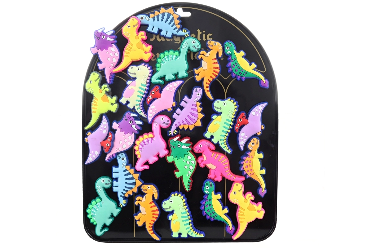 Allegri magneti con motivi di dinosauri faranno felici sia i bambini che gli adulti. Ogni magnete misura circa 5 × 5 cm, è in plastica morbida ed è destinato a scopi decorativi.