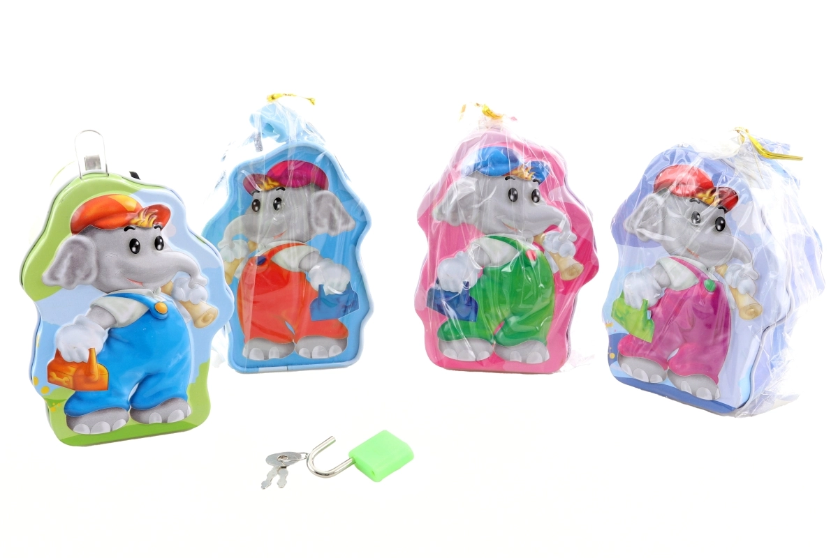 Elegante salvadanaio in metallo a forma di elefante con lucchetto e 2 chiavi, una soluzione pratica per riporre in sicurezza i piccoli risparmi. Le dimensioni compatte 8 × 10,5 × 4,5 cm e la struttura resistente garantiscono lunga durata e facile trasporto.