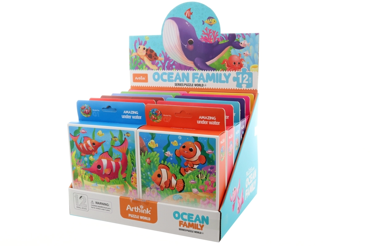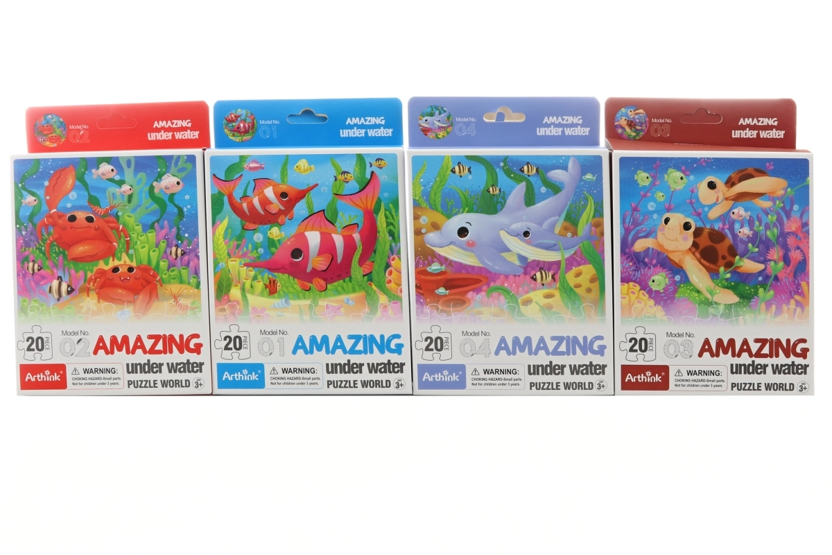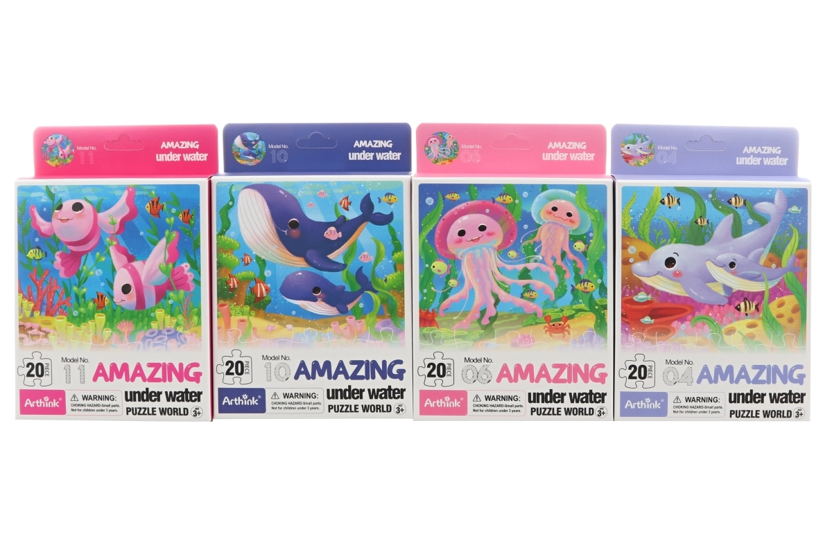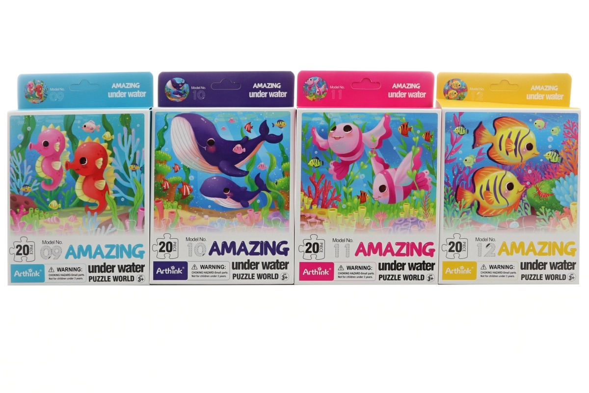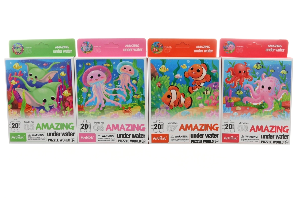 Una volta composto, il puzzle ha dimensioni compatte di 21 × 19 cm, quindi è facile da riporre e trasportare. Tra i 12 motivi disponibili spediamo la variante in base all’attuale disponibilità di magazzino; ciascuna raffigura scene attraenti della vita sottomarina.