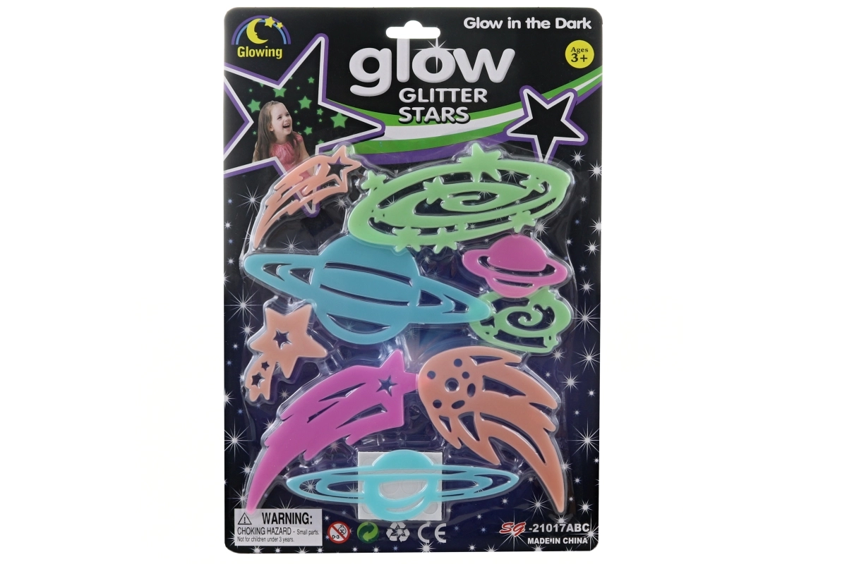 Crea il tuo cielo notturno a casa. Le decorazioni fosforescenti si caricano durante il giorno o sotto una lampada e poi risplendono al buio con una luce piacevole. Sono ideali per la cameretta, la sala giochi o come decorazione originale per feste.