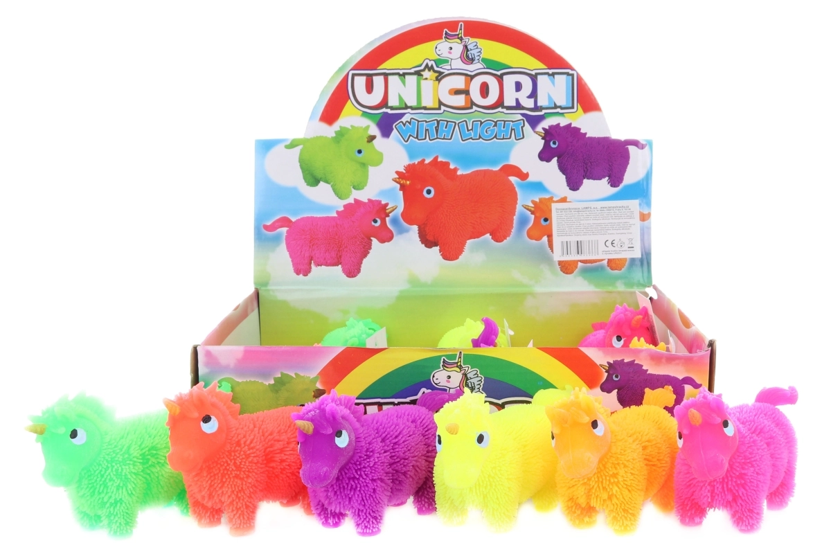 L'unicorno peloso luminoso è un divertente antistress che, quando viene premuto, attiva una luce colorata lampeggiante all'interno. Le morbide sporgenze e la superficie piacevole invitano a essere schiacciate e toccate, favorendo la motricità fine e la percezione sensoriale dei bambini.