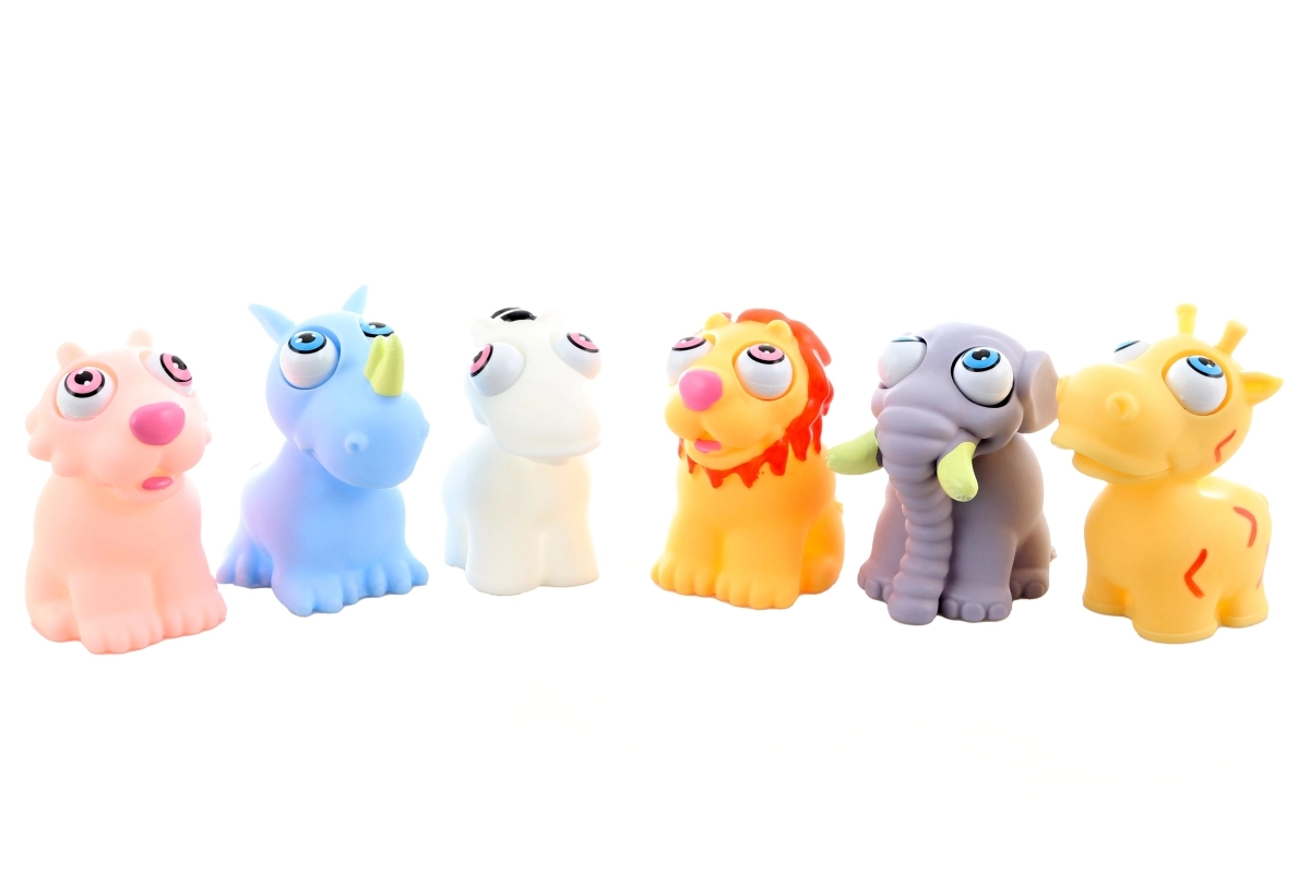 Scopri i divertenti animaletti da schiacciare con grandi occhi, che alla pressione fanno uscire gli occhietti in modo buffo. Grazie alla plastica morbida sono piacevoli da comprimere e ottimi per allenare la motricità fine oltre che come giocattolo antistress per bambini dai 3 anni in su.