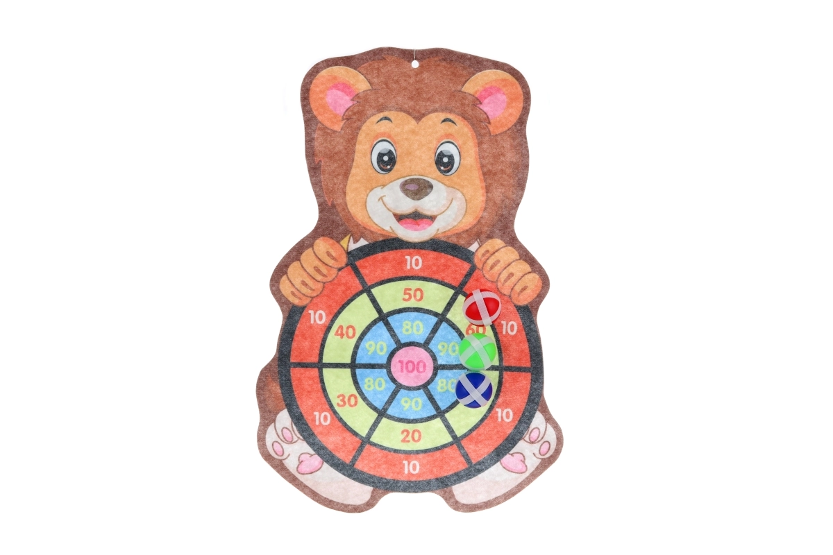 Divertente bersaglio per bambini con motivo del leone e fissaggio in velcro, offre ore di gioco sicuro e allenamento della precisione. Il set include il bersaglio, 3 palline morbide con velcro e un gancio per appenderlo. Ideale per bambini dai 3 anni – alternativa sicura alle freccette classiche, perfetto per la cameretta e in viaggio.