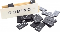 Classico gioco da tavolo Domino per piccoli e grandi in una confezione pratica. Le tessere sono in resistente plastica e riposte in un'elegante scatola di legno, che facilita il trasporto e la conservazione. Le dimensioni compatte 15 × 5 × 3 cm rendono questo gioco la scelta ideale per i viaggi. Adatto ai bambini dai 3 anni.