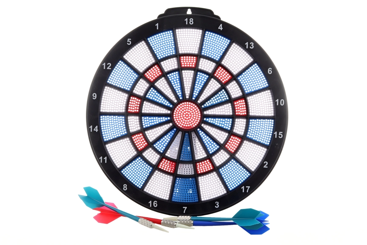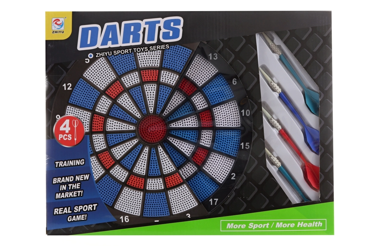 Questo set compatto offre divertimento e allenamento di precisione in uno. Il bersaglio con diametro di circa 28 cm è perfetto per principianti e giocatori occasionali. Le quattro freccette incluse, con corpo in plastica e peso in metallo, garantiscono un volo bilanciato e una presa confortevole.