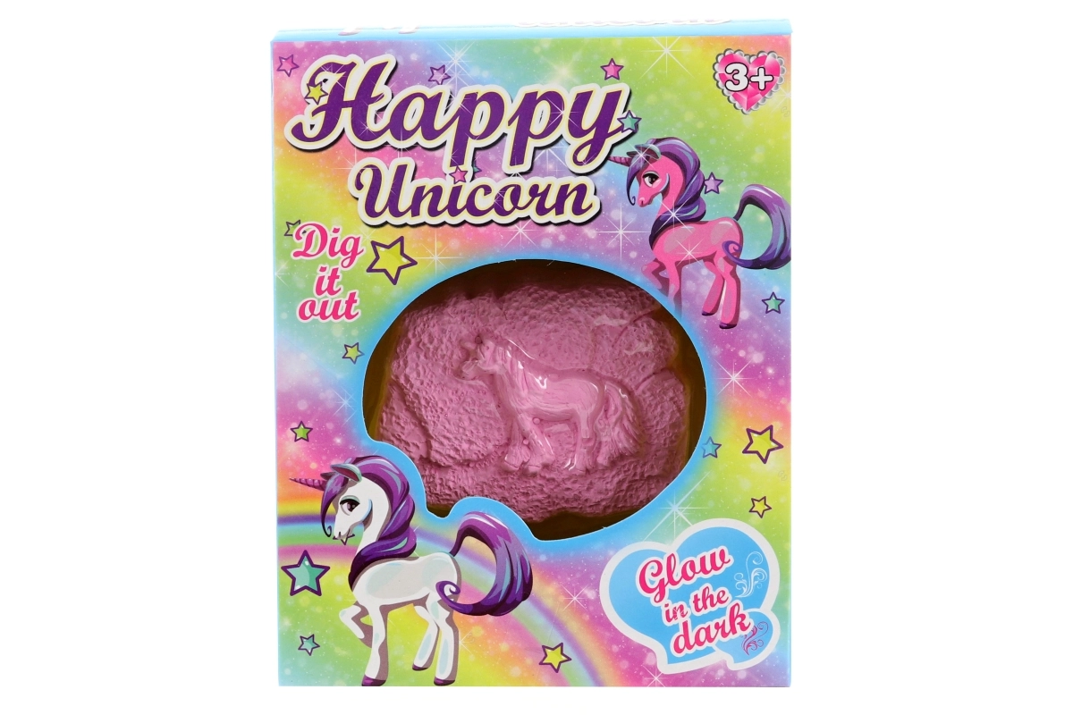 Questo creativo set di scavo farà felice ogni piccolo esploratore. Nella confezione trovi blocco da incidere e bacchetta di plastica, con cui il bambino scoprirà passo dopo passo l’unicorno di plastica nascosto. Dopo aver assorbito la luce del giorno, la figurina brilla al buio, intensificando l’esperienza della scoperta.