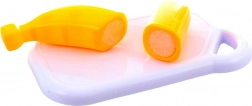 Inclusi coltellino per bambini, tagliere e piattino. I bimbi possono tagliare la frutta, servirla e imparare la preparazione dei cibi in modo giocoso.