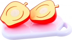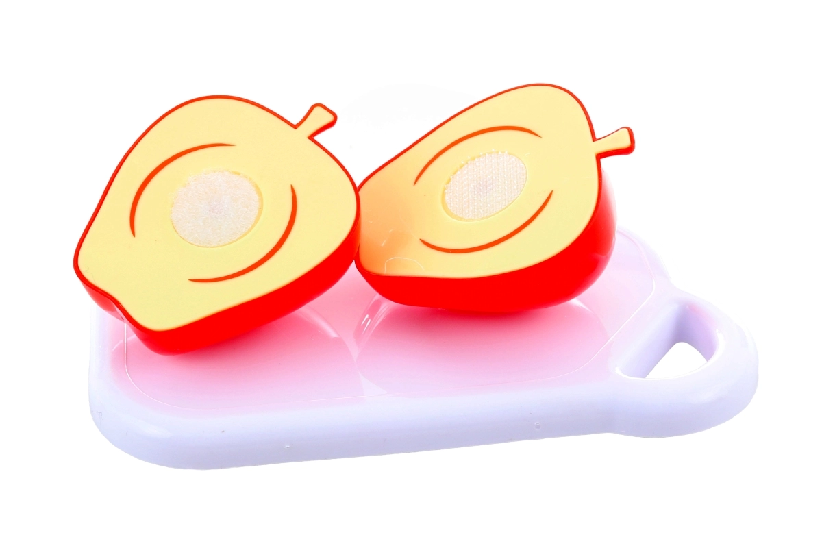 Questo colorato set di plastica per tagliare la frutta è ideale per i primi esperimenti in cucina. La frutta è divisa a metà e unita con chiusura a strappo, così i bambini possono “tagliare” la frutta con il coltellino sicuro e ricomporla. Ottimo per sviluppare motricità fine, coordinazione occhio–mano e per imparare gli alimenti salutari.