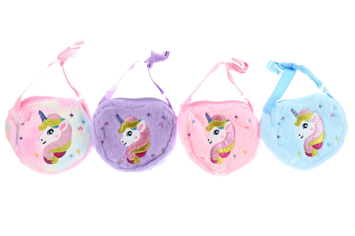 Adorabile borsetta a tracolla in peluche con motivo unicorno, perfetta per ogni piccola fashionista. Grazie al materiale morbido e peloso, alla tracolla regolabile e alla pratica chiusura lampo, è ideale per piccoli oggetti, giocattoli o la merenda. Disponibile in più colori a seconda della disponibilità di magazzino.