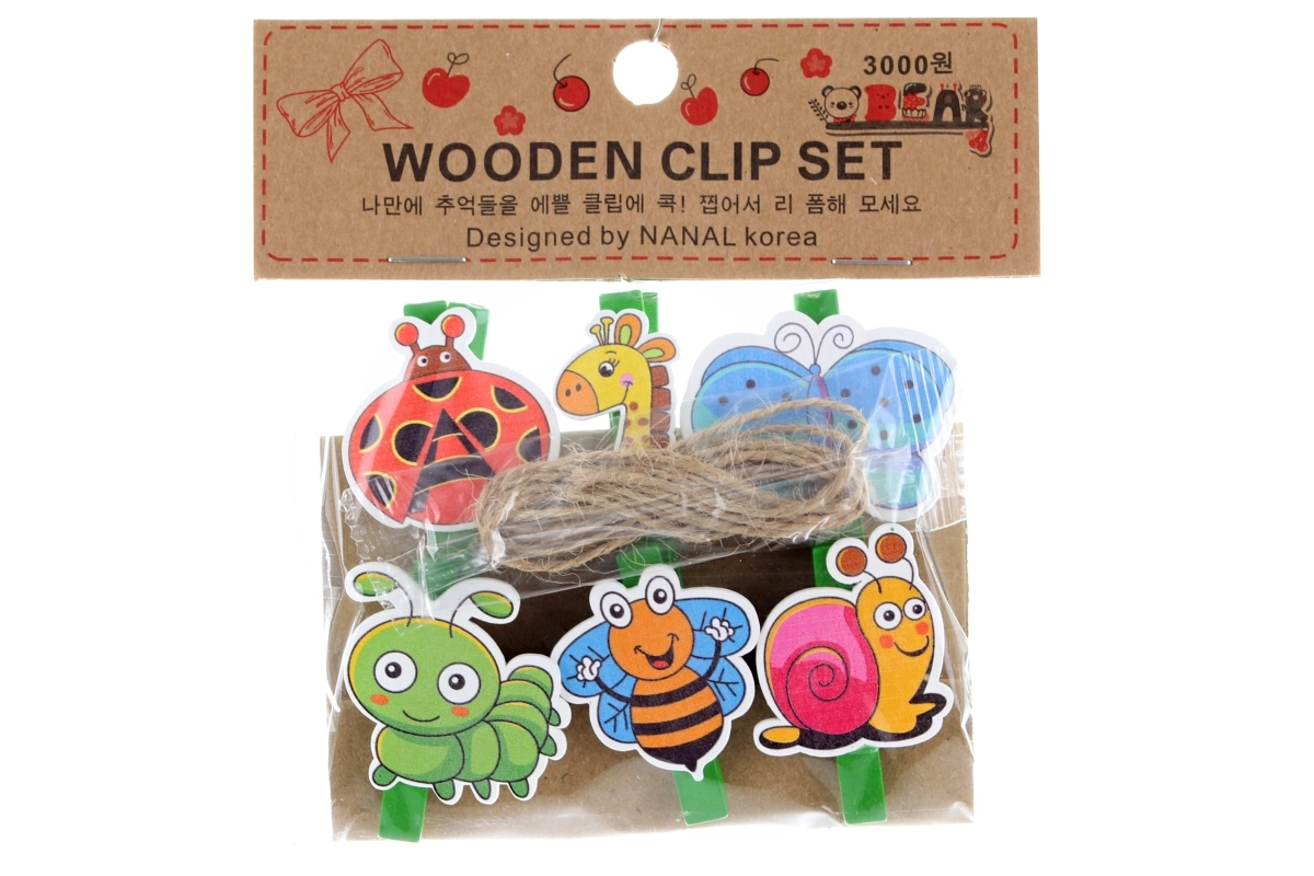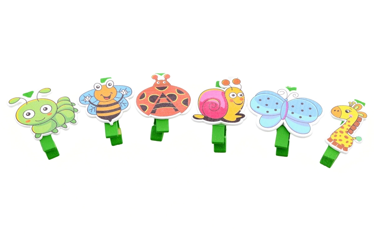 Set elegante di mollette in legno con motivi di animaletti per decorazioni, confezionamento regali e organizzazione domestica. La confezione contiene 6 clip realizzati in legno di qualità. Uso universale, aspetto naturale e dimensioni pratiche si adattano a ogni casa e ufficio.