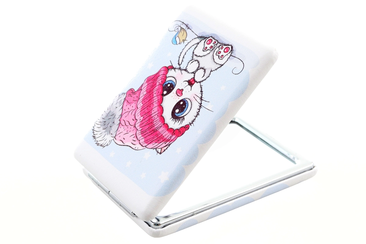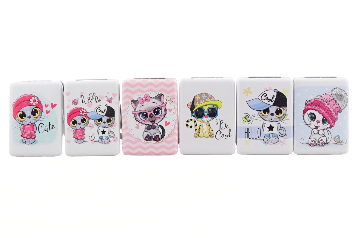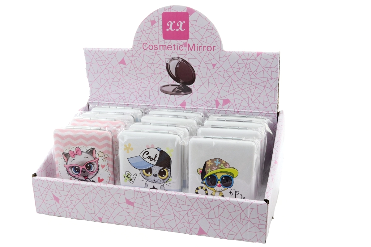 Pratico specchietto tascabile rettangolare con allegri motivi di animaletti, ideale per borsa e zaino. Offre specchio su entrambi i lati, dimensioni compatte 6 × 8,5 × 1,5 cm ed è confezionato singolarmente in bustina. Disponibile in più varianti di motivi – fornitura in base alla disponibilità di magazzino. Il prodotto non è un giocattolo.