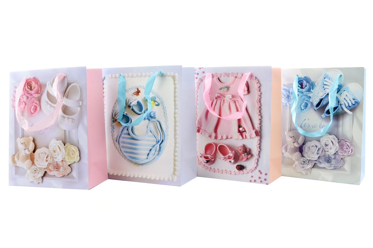 Questa borsa regalo è un’ottima scelta per consegnare i regali alla nascita di un bambino. Grazie alla carta di qualità e alla lavorazione accurata ha un aspetto rappresentativo ed è al contempo sufficientemente resistente per regali leggeri, vestitini o piccoli accessori per il corredino.